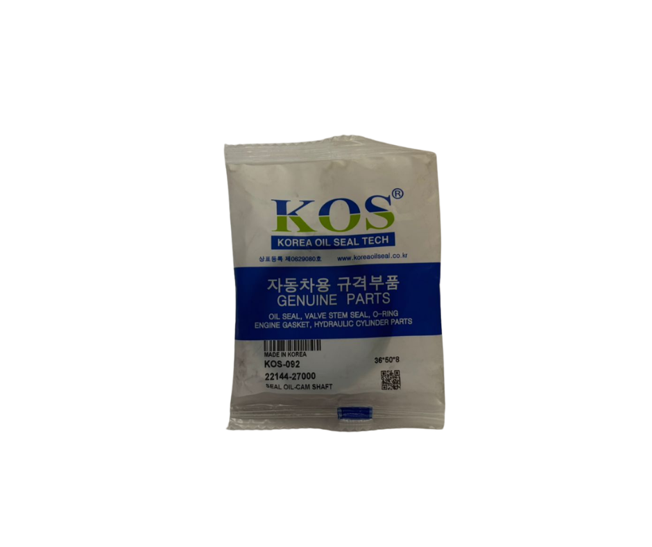 Este retén de aceite es una pieza de precisión fabricada por Korea Oil Seal Tech (KOS Tech), diseñada para sellar el extremo frontal del árbol de levas. Es un componente vital para mantener la sincronización limpia y libre de aceite en motores diesel con sistema CRDi, evitando que las fugas dañen la correa de distribución o contaminen los sensores frontales.